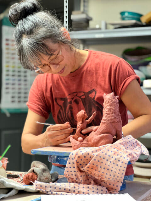 In the Clay Sculpture class, participants create stoneware sculptures of any subjects they wish. Critiques and advice are provided to help everyone realize their desired results.