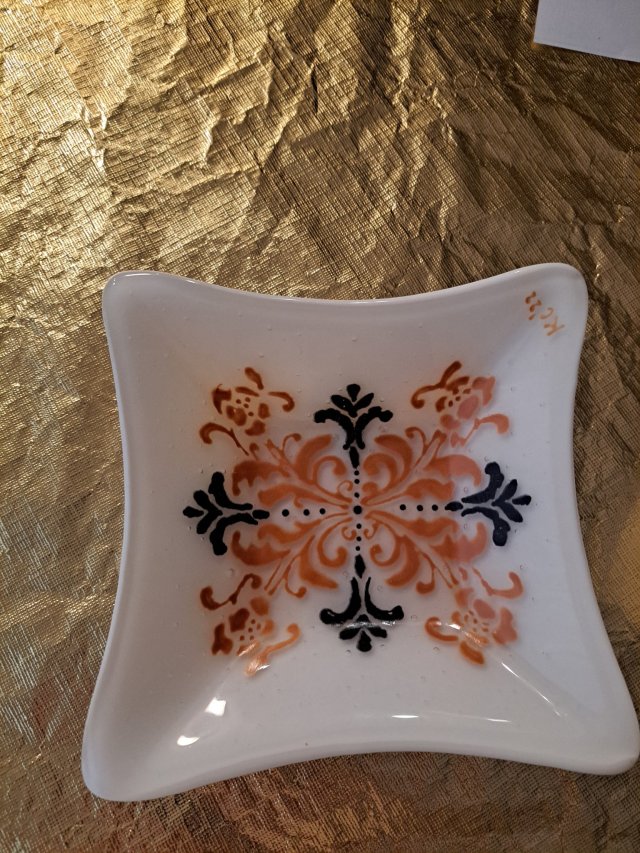 Hello, my name is Kristen Carter. U.S. Army veteran, wife and mother. Art has been a passion of mine since grade school. Starting with acrylic painting , to wood burning/carving. Glass came to me first in stained form. I quickly found fusing and fell in love. Now, six years later, I am completely immersed in all things glass.